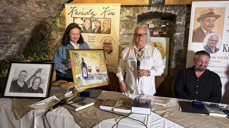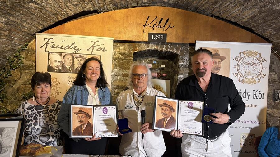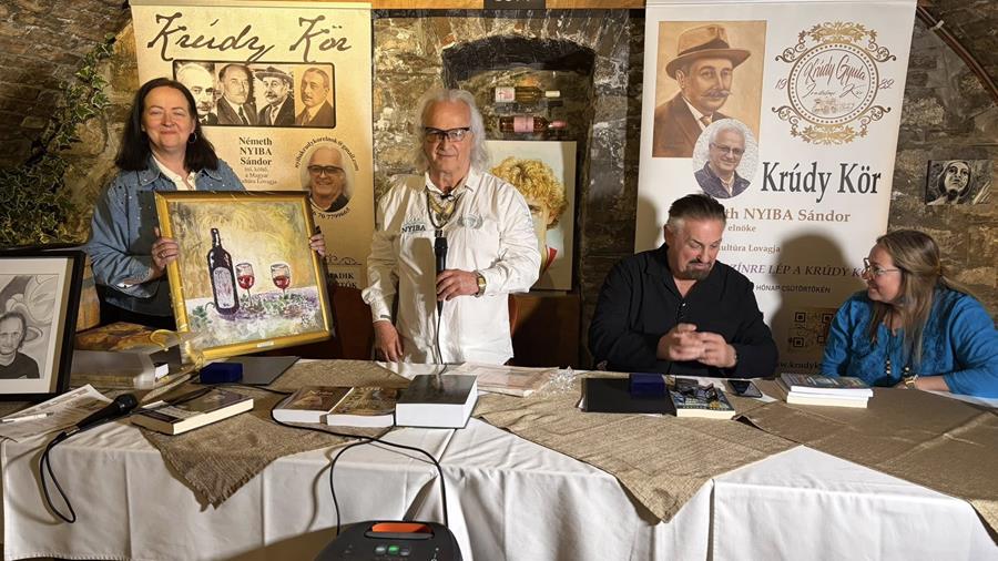 Külön öröm számomra, hogy Simon M. Veronika Krúdy, Cserhát aranyérmes mesteremtől egy különleges díjat vehettem át. Rideg Judit gyönyörű festményt hozott ajándékba. Növényi Norbert és Rideg Judit Krúdy-aranyérmet, illetve Krúdy-díjat kaptak.